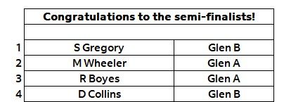 Congratulations to the final 4 pairs in the mixed pairs competition!